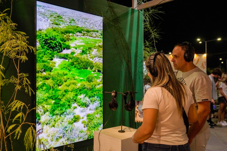 Uno de los atractivos centrales es el rincón inmersivo, un espacio sensorial diseñado para transportar al público al interior del bosque. Allí, sonidos naturales, aromas autóctonos y una ambientación envolvente permiten experimentar la esencia del ecosistema sanjuanino, generando un puente emocional con aquello que el visitante suele ver solo a la distancia. La propuesta busca despertar conciencia desde la vivencia directa: cuando se siente el bosque, se lo comprende y se lo cuida.