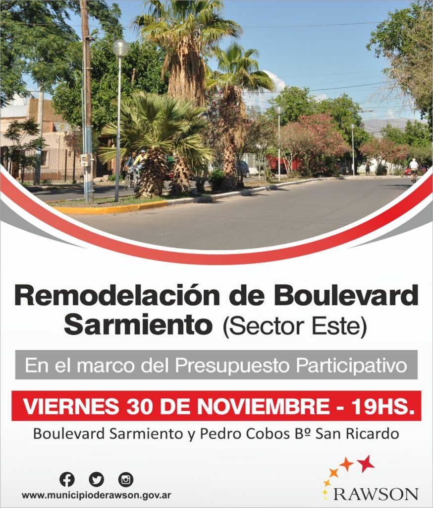 Este viernes se realizará la inauguración de la remodelación de Boulevar Sarmiento a las 19 horas .Se invita a los vecinos.-