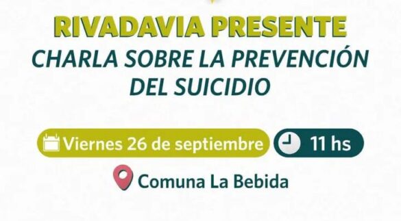 La Municipalidad de Rivadavia convocó a una jornada especial en el marco del Mes de la Prevención del Suicidio. El encuentro se llevará a cabo el viernes 26 de septiembre desde las 11 en la Comuna La Bebida. La actividad está pensada como un espacio...