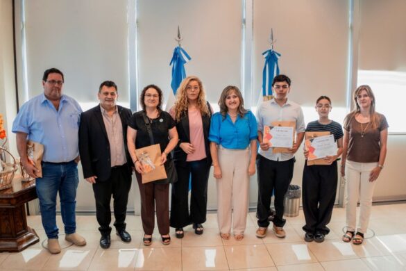 La ministra de Educación, Silvia Fuentes, y la secretaria de Educación, Mariela Lueje, mantuvieron un encuentro con estudiantes y docentes de la EPET N°3 que integran el proyecto Hidracaps, una iniciativa de base tecnológica que desarrolla cápsulas de agua comestibles y biodegradables elaboradas a base...