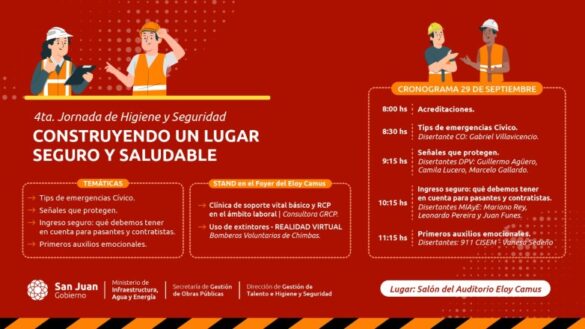 La Dirección de Gestión de Talento e Higiene y Seguridad, del Ministerio de Infraestructura, Agua y Energía, invita a la comunidad a participar en la 4.ª Jornada de Higiene y Seguridad en el Trabajo: “Construyendo un lugar seguro y saludable”. Este espacio busca fortalecer la...