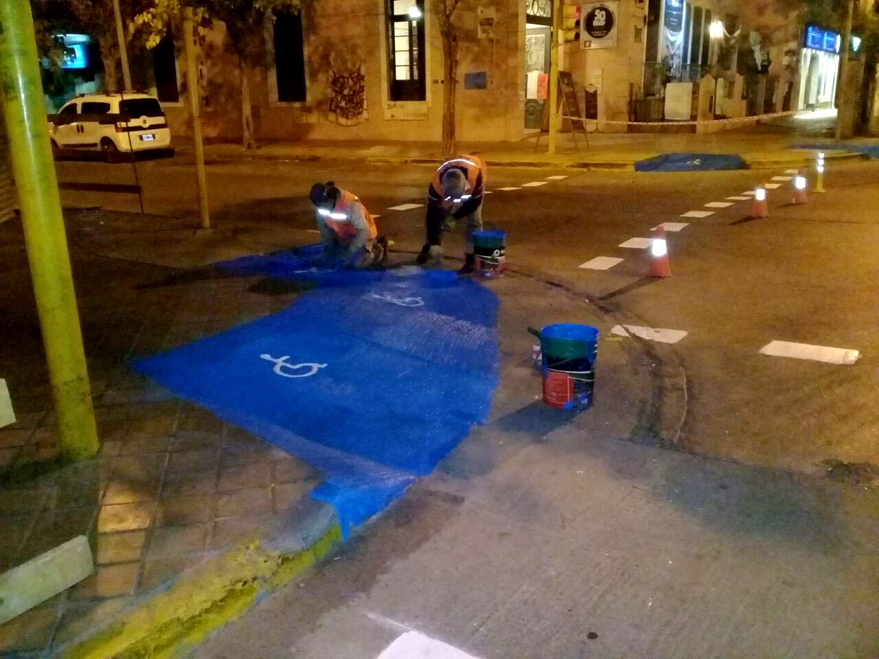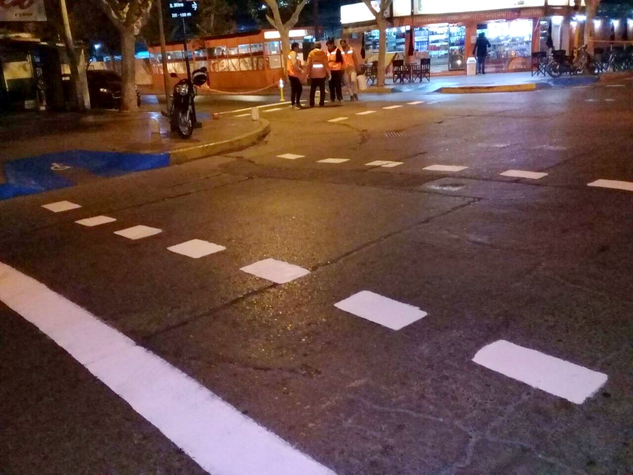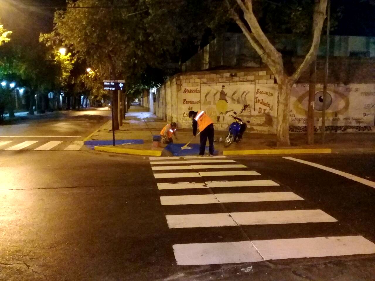 El Municipio de la Ciudad de San Juan, a través de su Dirección de Tránsito y Transporte, dependiente de la Secretaría de Planificación Urbana, está llevando a cabo en distintos sectores del microcentro tareas de demarcación de sendas peatonales, así como también pintado de cordones y rampas de accesibilidad, para per.