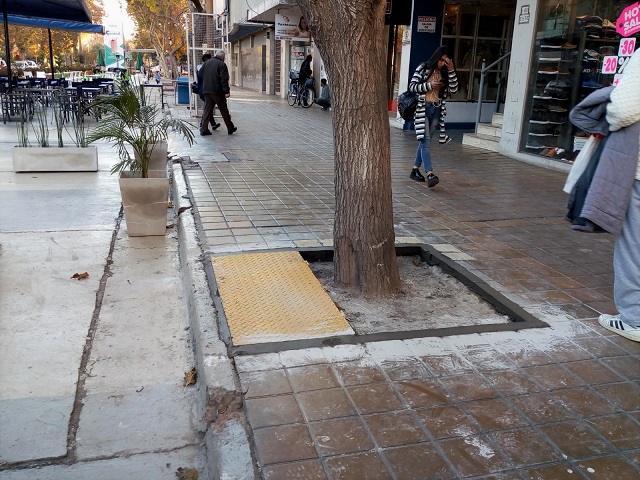También se están realizando tareas de reparación de veredas en el tramo descripto de dicha avenida, en ambos costados, ahora convertida en semi peatonal.
