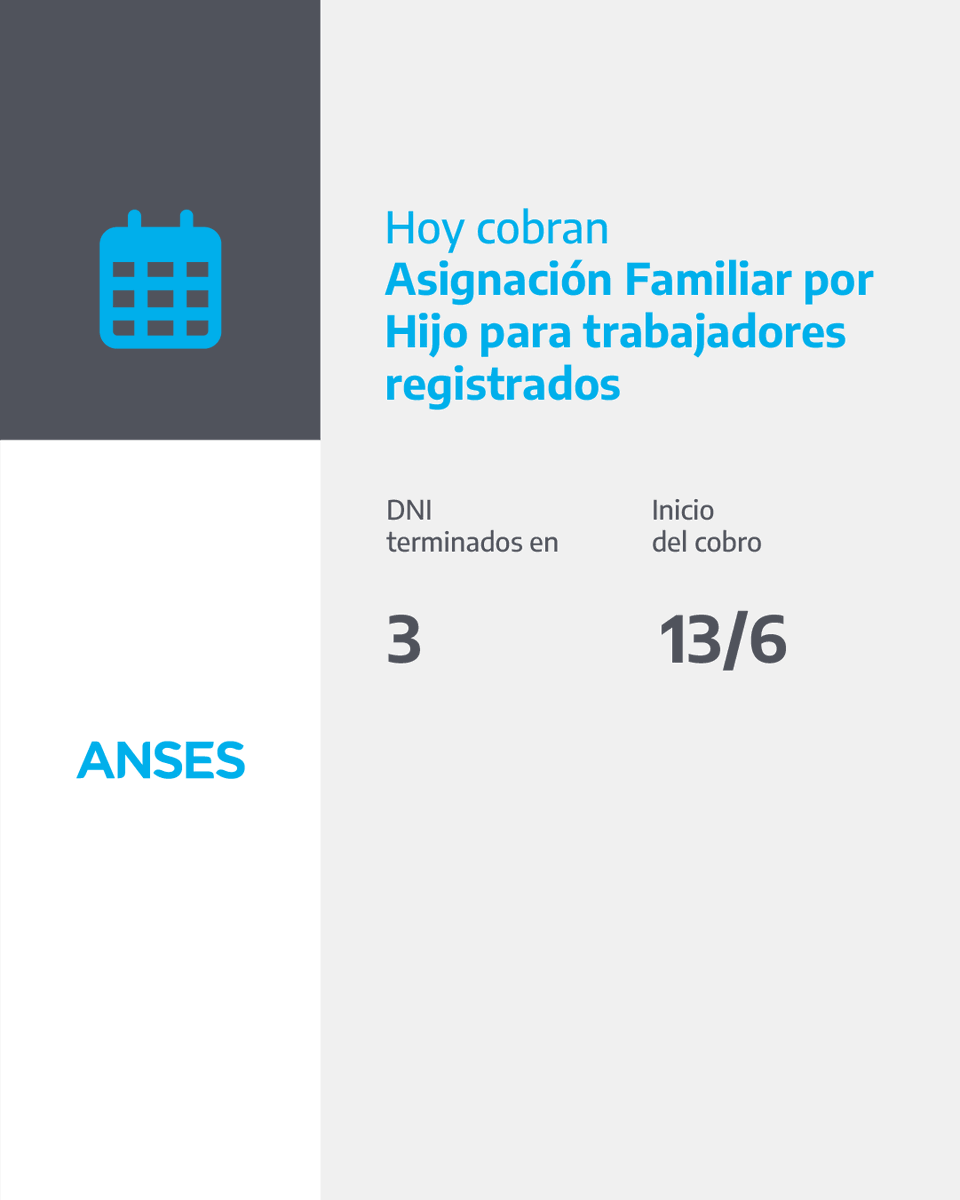 Hoy cobran Asignación Familiar por Hijo para trabajadores registrados: DNI terminados en 3