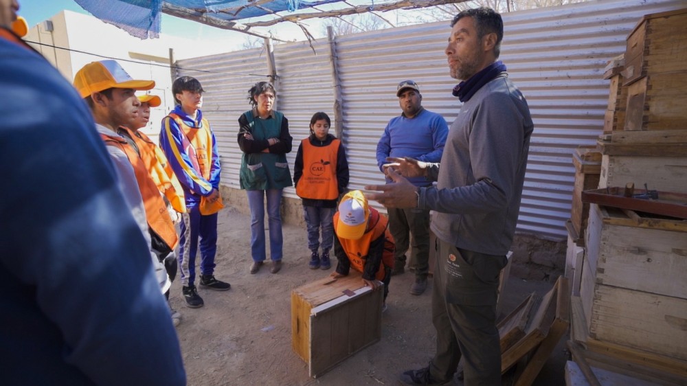 Los estudiantes recibieron capacitaciones y trabajaron en la instalación de un apiario, preparando cuadros para iniciar la producción de miel. La comunidad escolar ya contaba con cajas elaboradas, que se reforzarán con la entrega de núcleos vivos a partir de octubre.