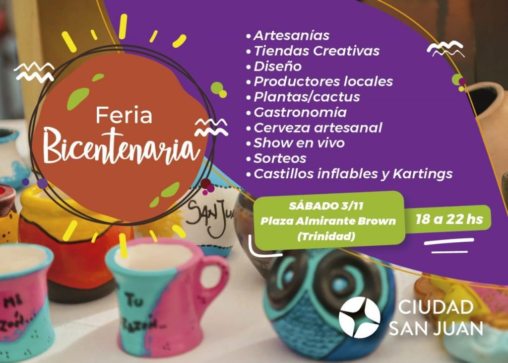 La Municipalidad de la Ciudad de San Juan, a través de la Secretaría de Cultura y Turismo, informa que continúa con la realización de la Feria Bicentenaria por distintas plazas del departamento Capital.