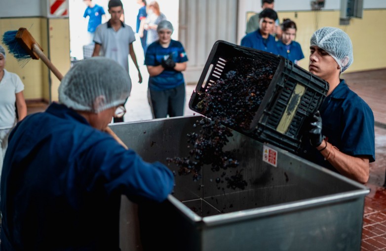 De esta manera, en la bodega de la escuela fundada por Domingo Faustino Sarmiento los estudiantes de 7º año participan en todas las etapas del proceso productivo, desde la cosecha y selección de la uva hasta la molienda, fermentación, control de calidad y embotellado.