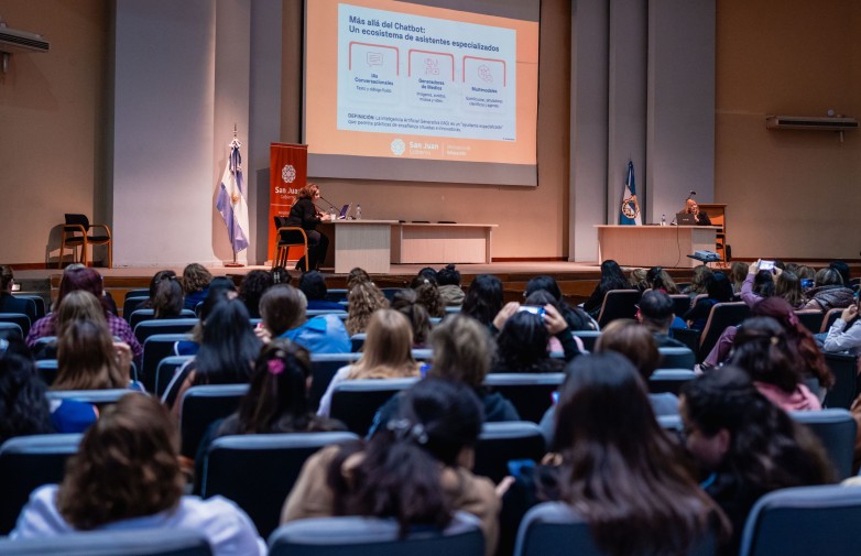 La línea de formación docente 2026 sobre IA comenzó en febrero con un primer encuentro en el Centro de Convenciones, que reunió a docentes de Nivel Inicial, Primario, Educación de Adultos, maestros de especialidades, docentes de Nivel Secundario y Superior, junto a estudiantes avanzados de formación docente. En tanto, la semana pasada por primera vez se desarrolló en el departamento Valle Fértil en el marco de su modalidad itinerante.