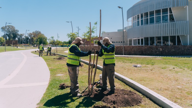 La Dirección de Espacios Verdes, dependiente del Ministerio de Infraestructura, Agua y Energía, avanza con la plantación de 100 nuevos árboles en el Parque Belgrano. La iniciativa forma parte del Plan de Reforestación del Eje Cívico Cultural y busca reforzar el arbolado urbano, mejorar el entorno y promover el cuidado ambiental en espacios de uso comunitario.